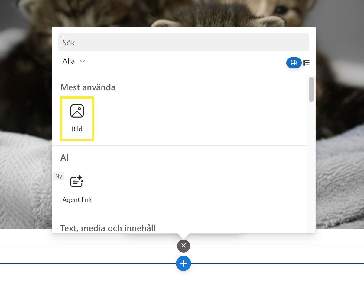 Bilden som valts ut och laddats ner kan sedan infogas via Sharepoints mediadialog.