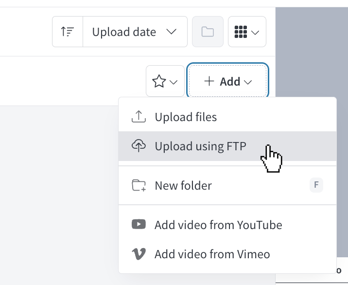 Dina FTP-uppgifter hittar du i överkant av filvisningsvyn under knappen för att ladda upp.