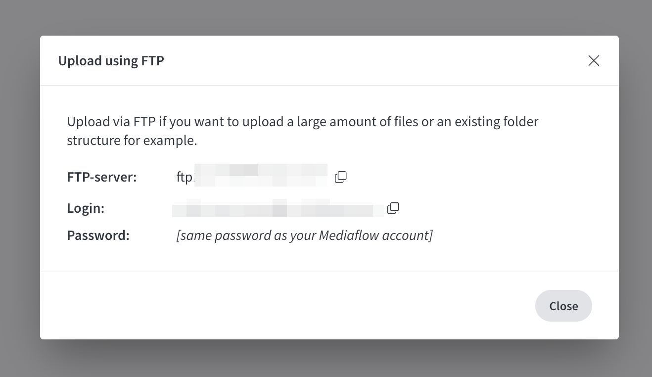 Den här artikeln är till för er som vill exportera ut allt eller stora delar av ert material från Mediaflow. Med FTP kan ni få med hela mappstrukturen. Observera att vi inte stödjer SFTP i dagsläget tyvärr.